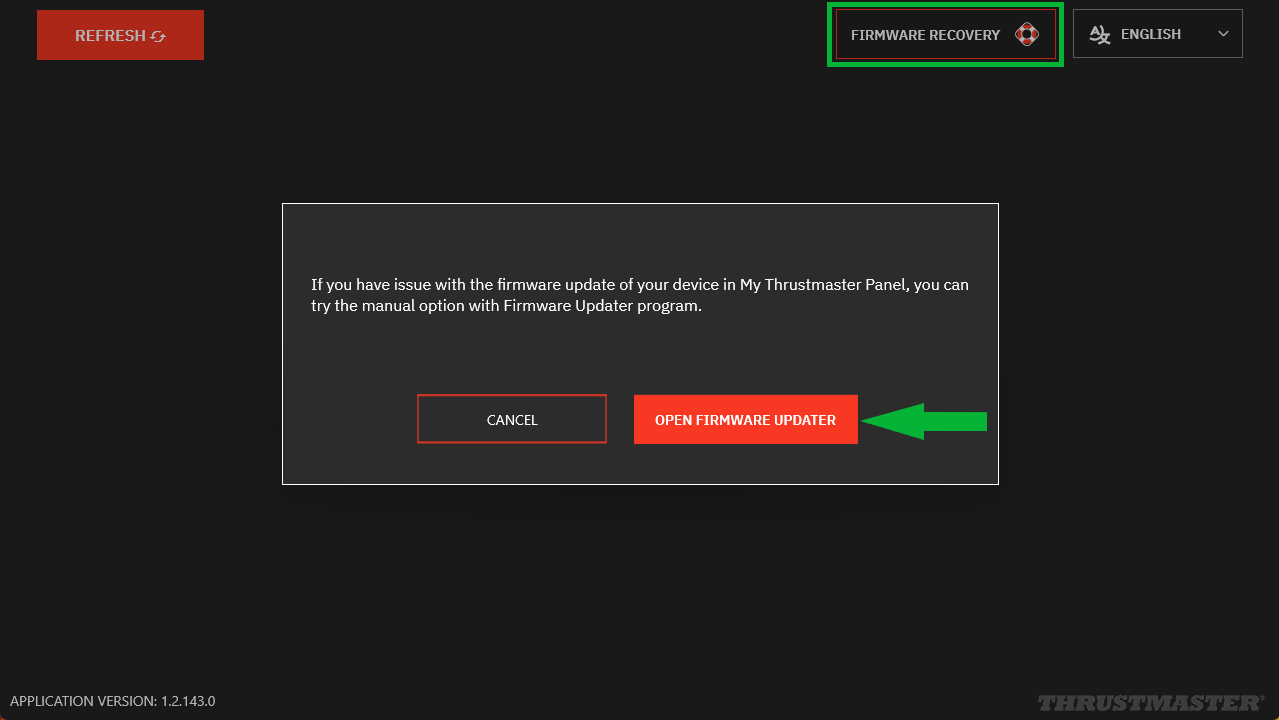 The “Thrustmaster – Firmware Updater” window will appear: