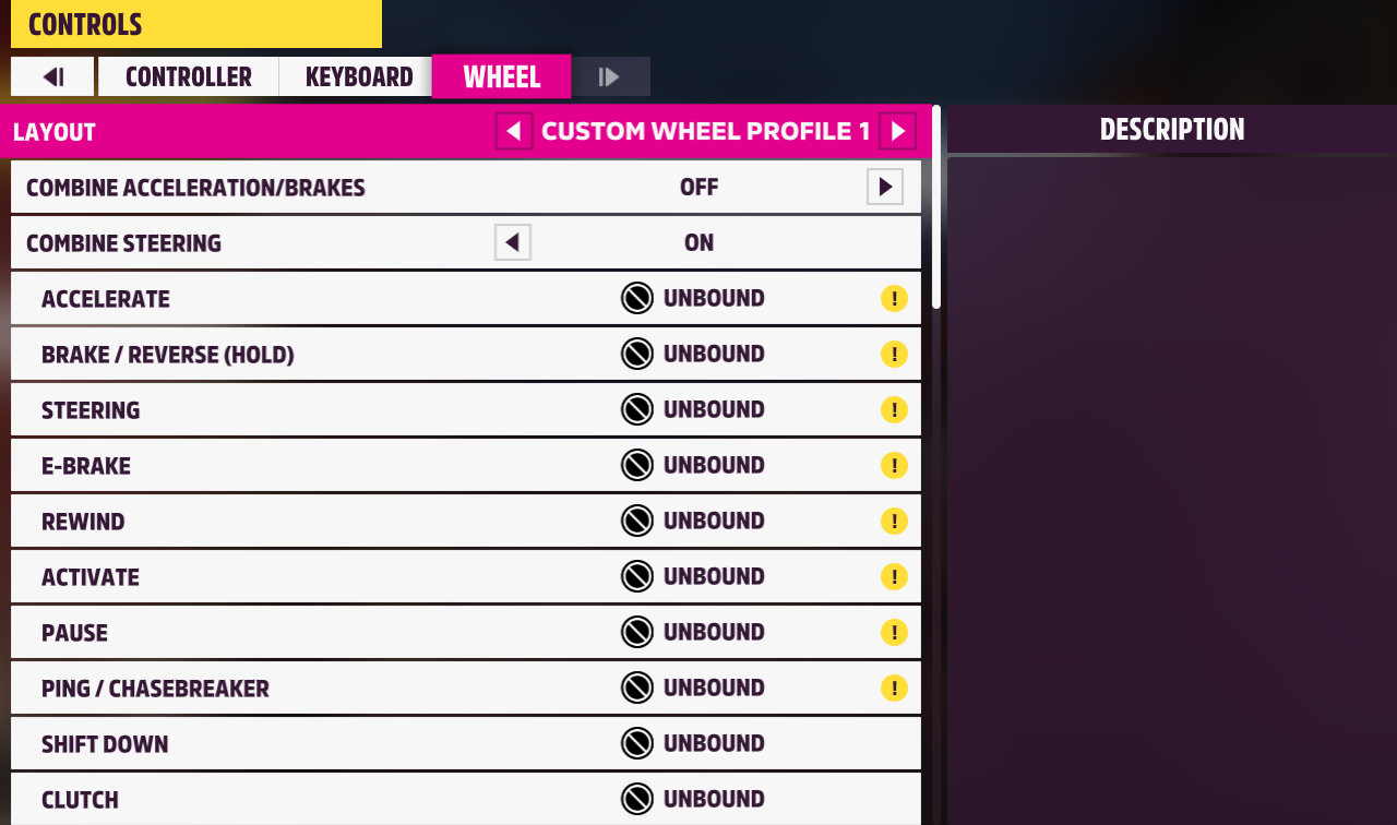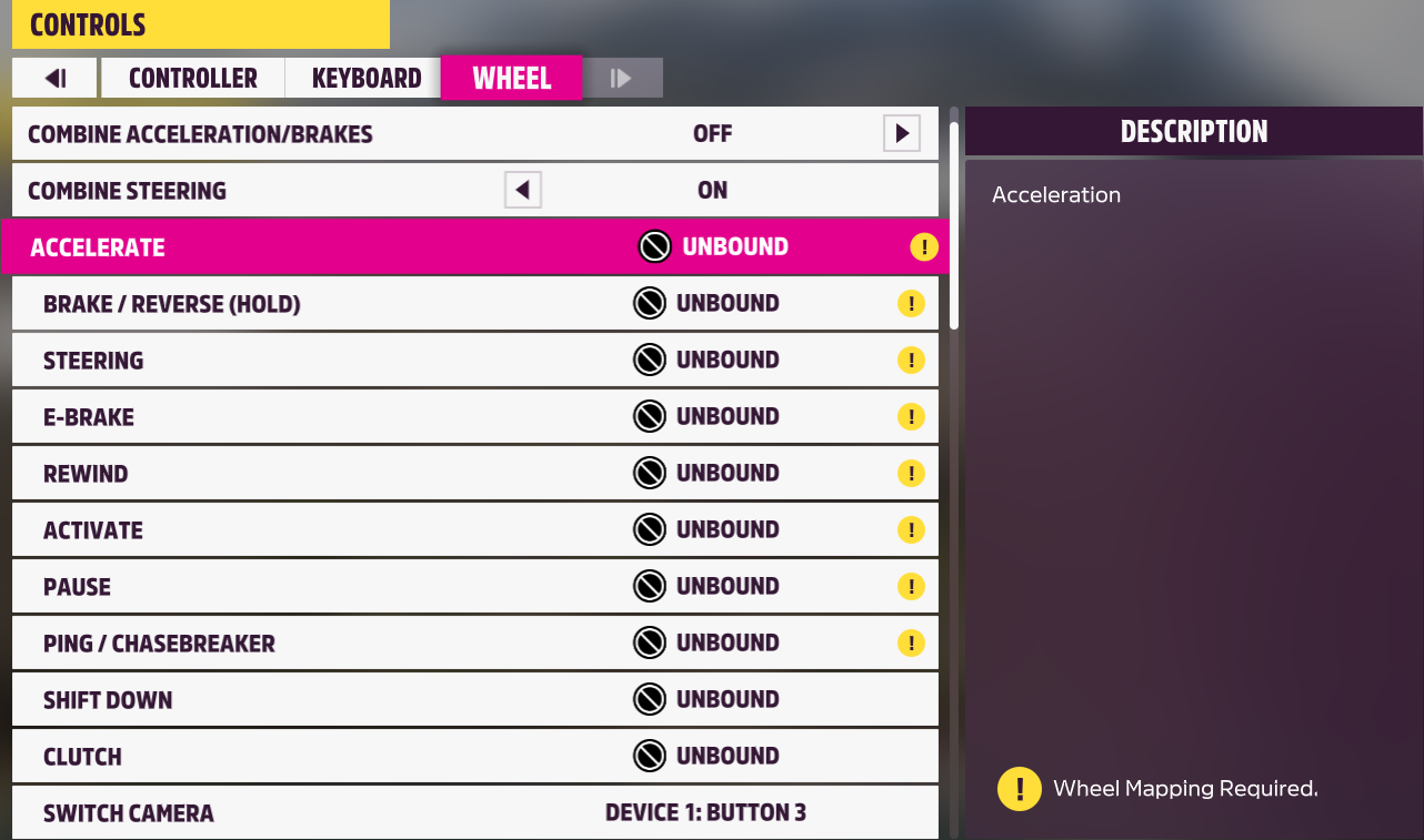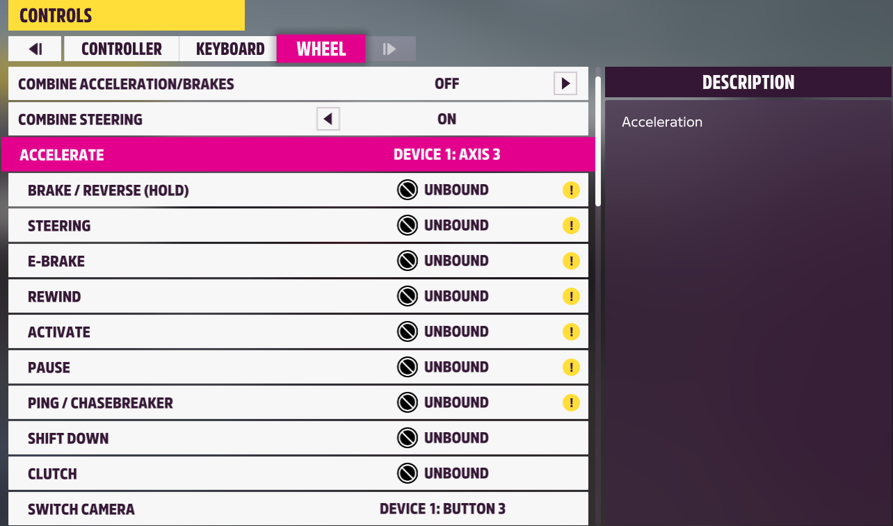 - As a confirmation, UNBOUND will be replaced by the name of the axis or button (DEVICE 1: AXIS, etc.).