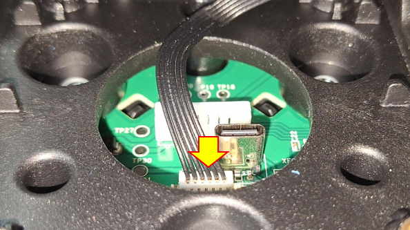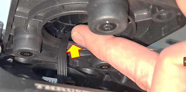 T598またはT818ベースを使用していて、突然の切断、フォースフィードバックの喪失、またはT598ディスプレイに「No Wheel Detected」というメッセージが表示される場合、Quick Releaseの取り付け中にケーブルが挟まれた可能性があります。