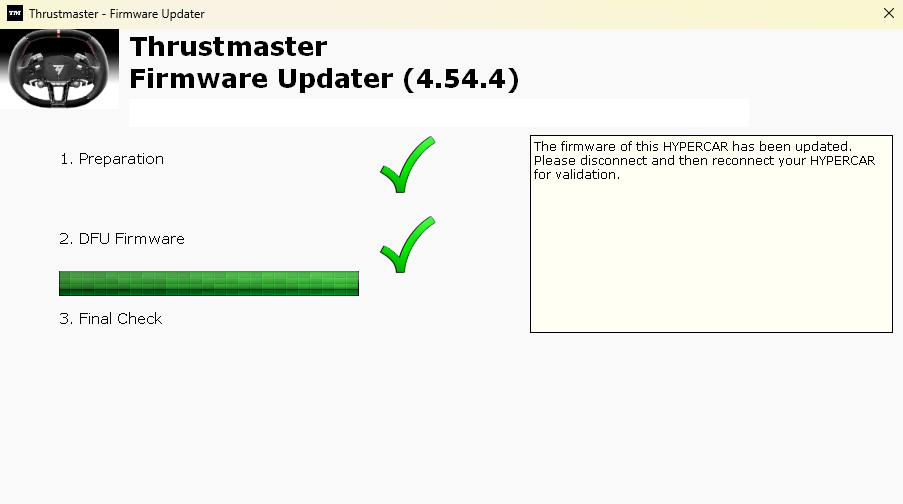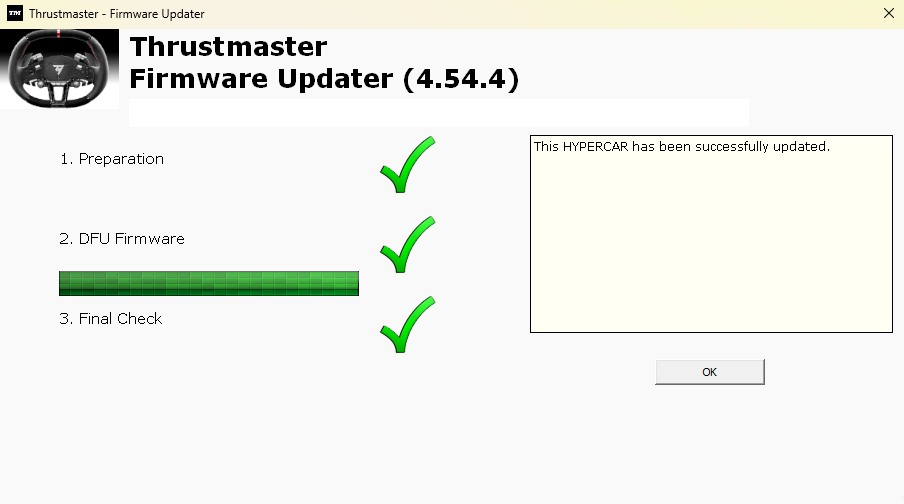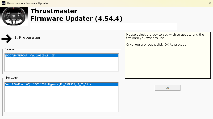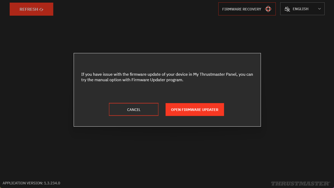Het venster “Thrustmaster – Firmware Updater” wordt geopend: